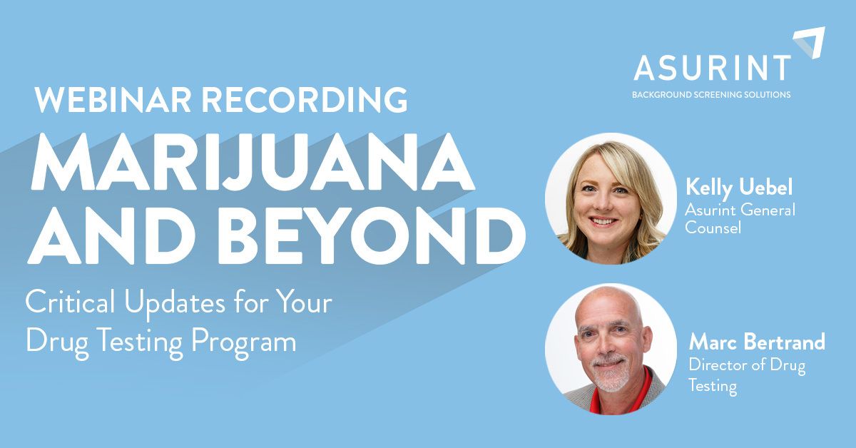 Once again, Asurint is here to help with our newest webinar, Marijuana and Beyond: Critical Updates for Your Drug Testing Program.